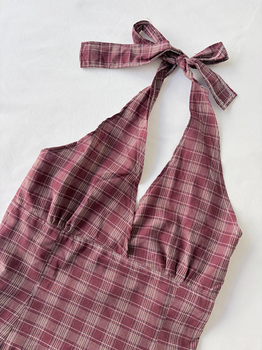 00’s Blue plaid halter tank | Size 12