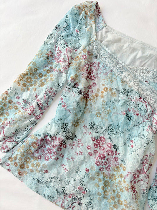 00’s Cossē blue floral top | Size 12