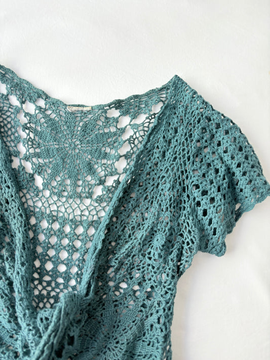 00’s Crochet teal tie top | Size 8