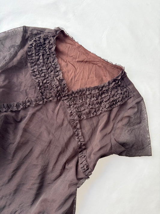 00’s Chocolate brown micro mesh tee | Size large