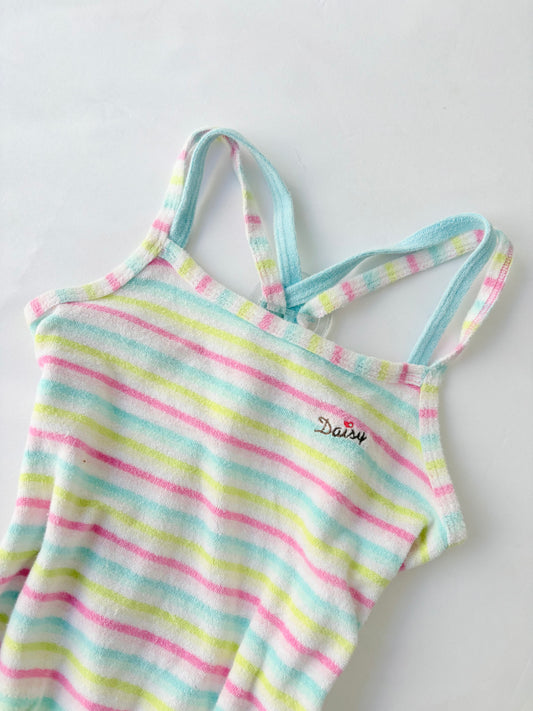 00’s Daisy towelling striped tank | Size 8-10