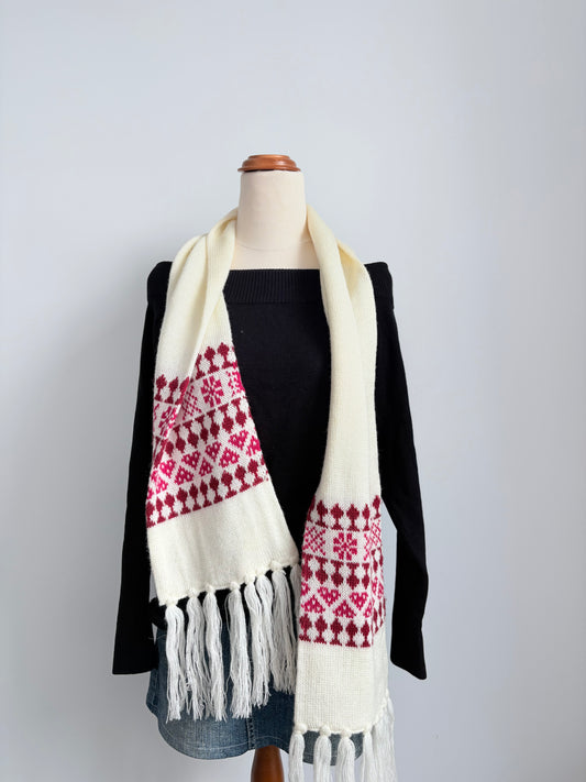 00’s Patterned cream tassel scarf