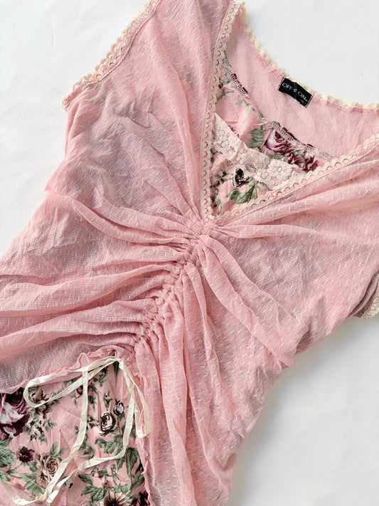 00’s Ruched pink floral top | Size large