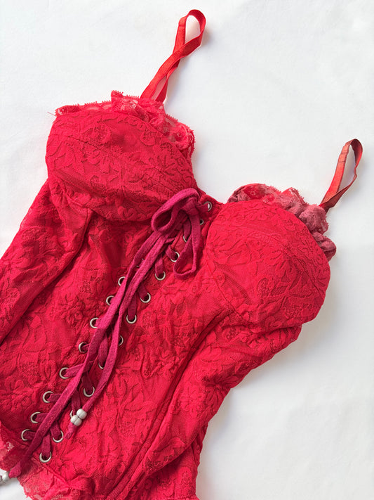 00’s Red lace up corset | Size XS