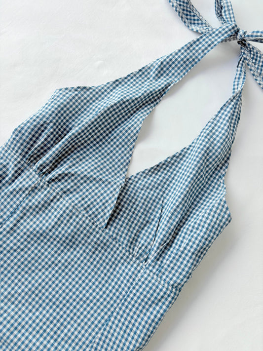 00’s Blue plaid halter tank | Size 10