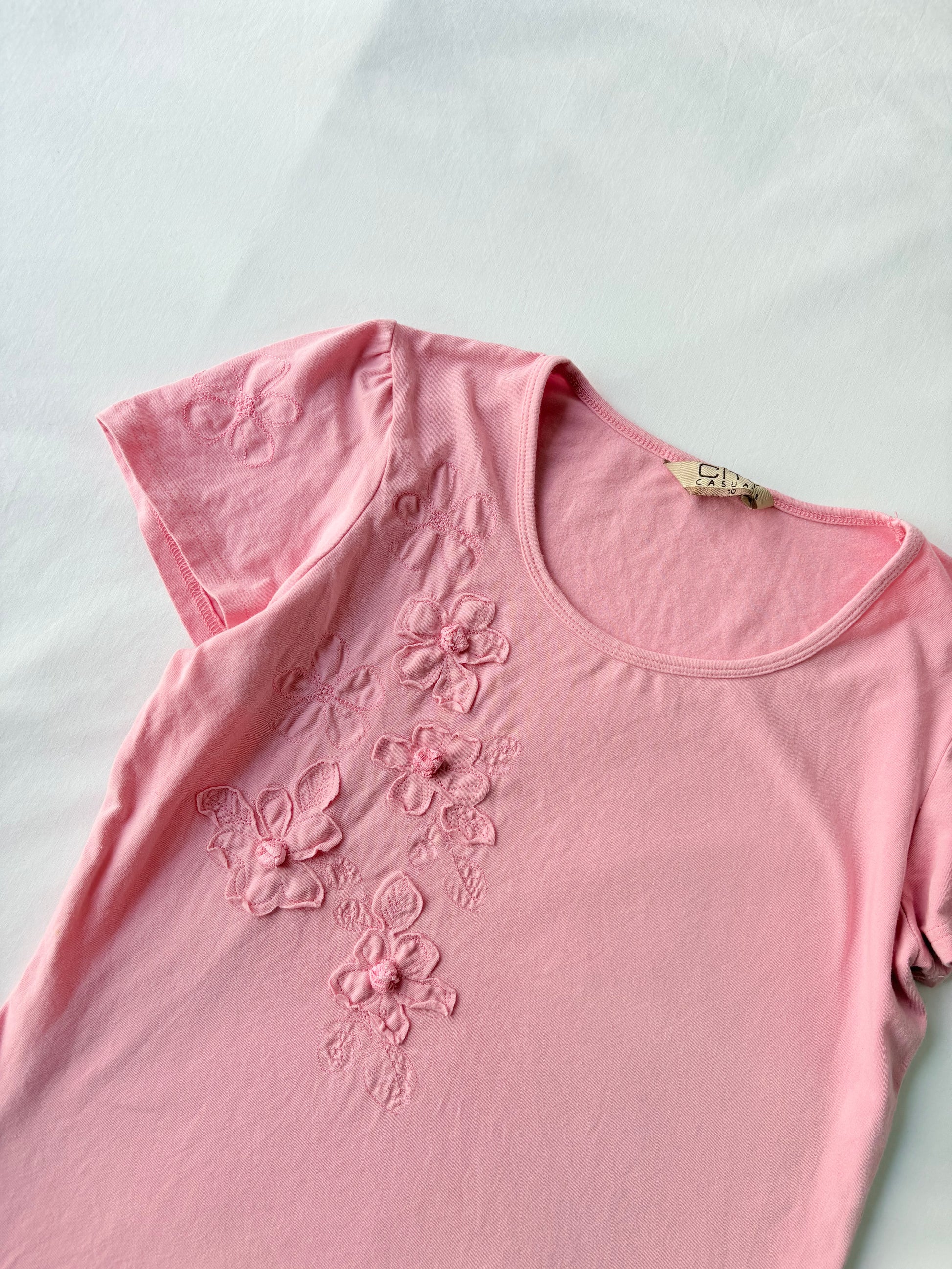 00’s Baby pink embroidered tee | Size 10