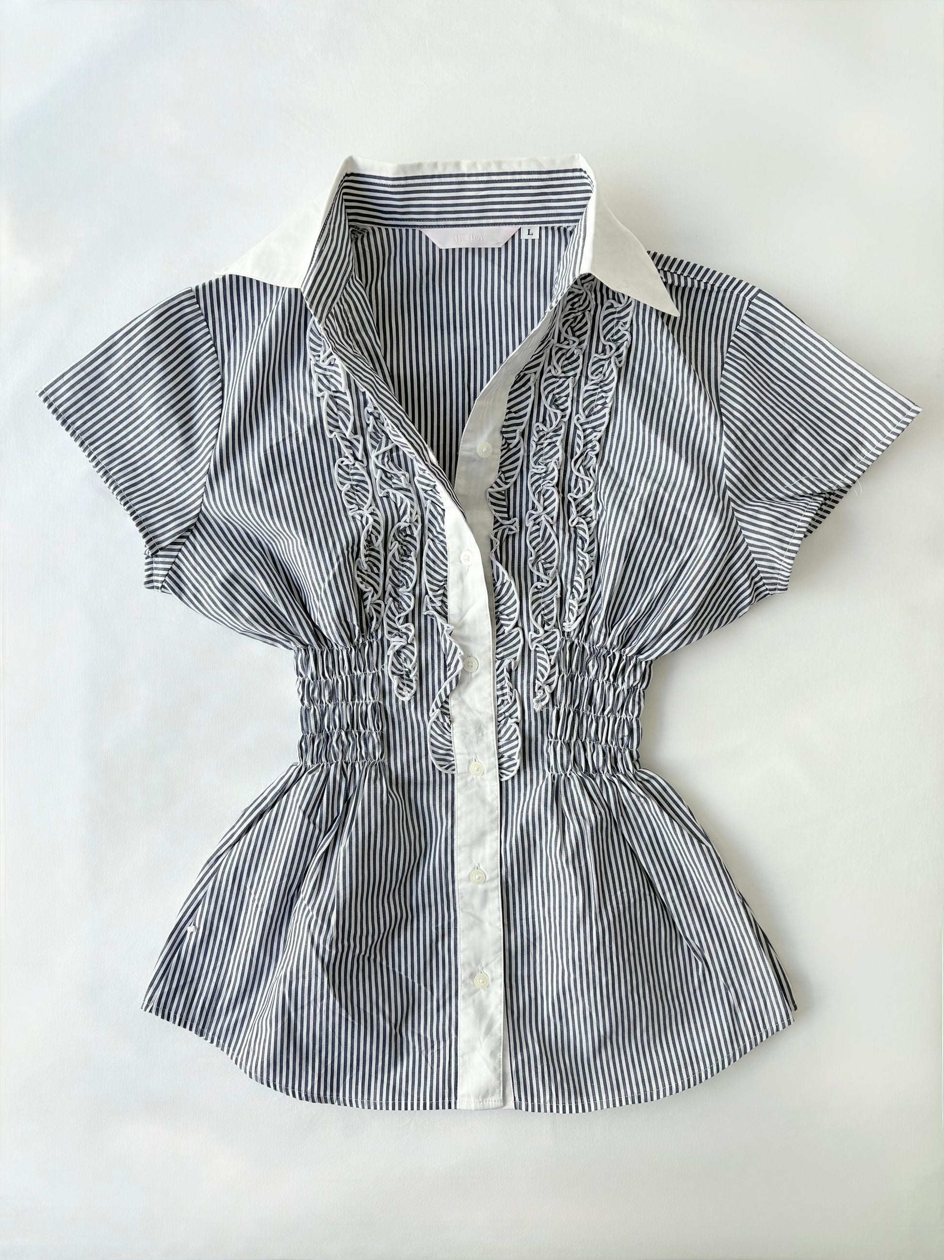 00’s Blue ruffle cinched shirt