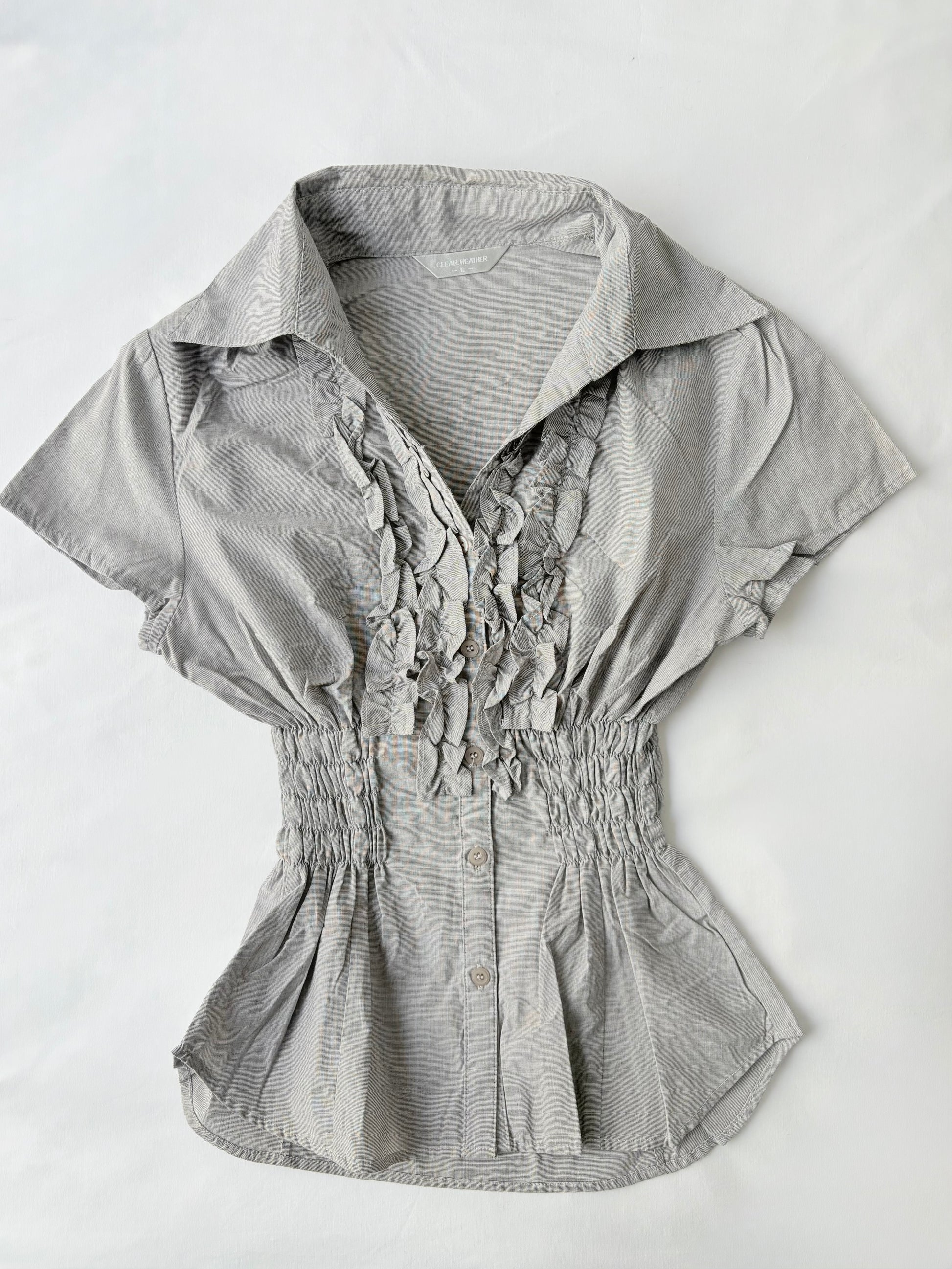 00’s Grey cinched ruffle shirt