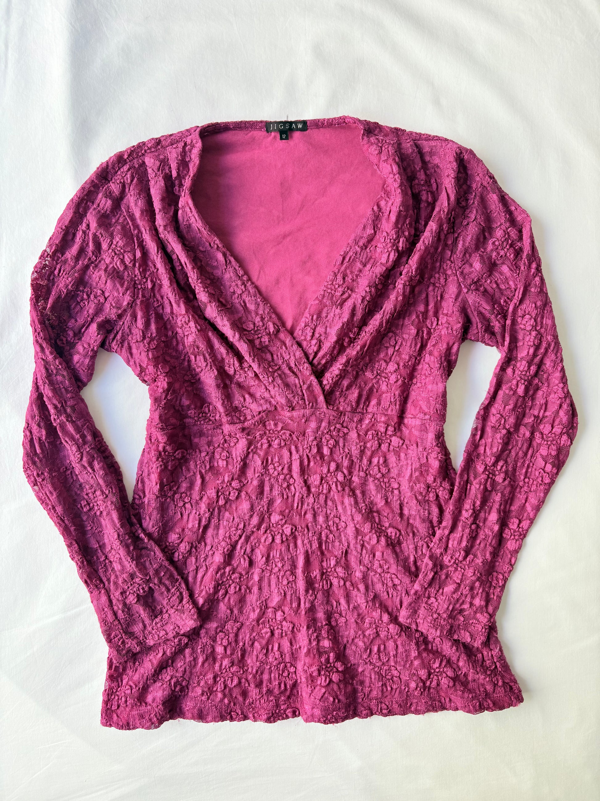 00’s Magenta lace long sleeve | Size 12-14