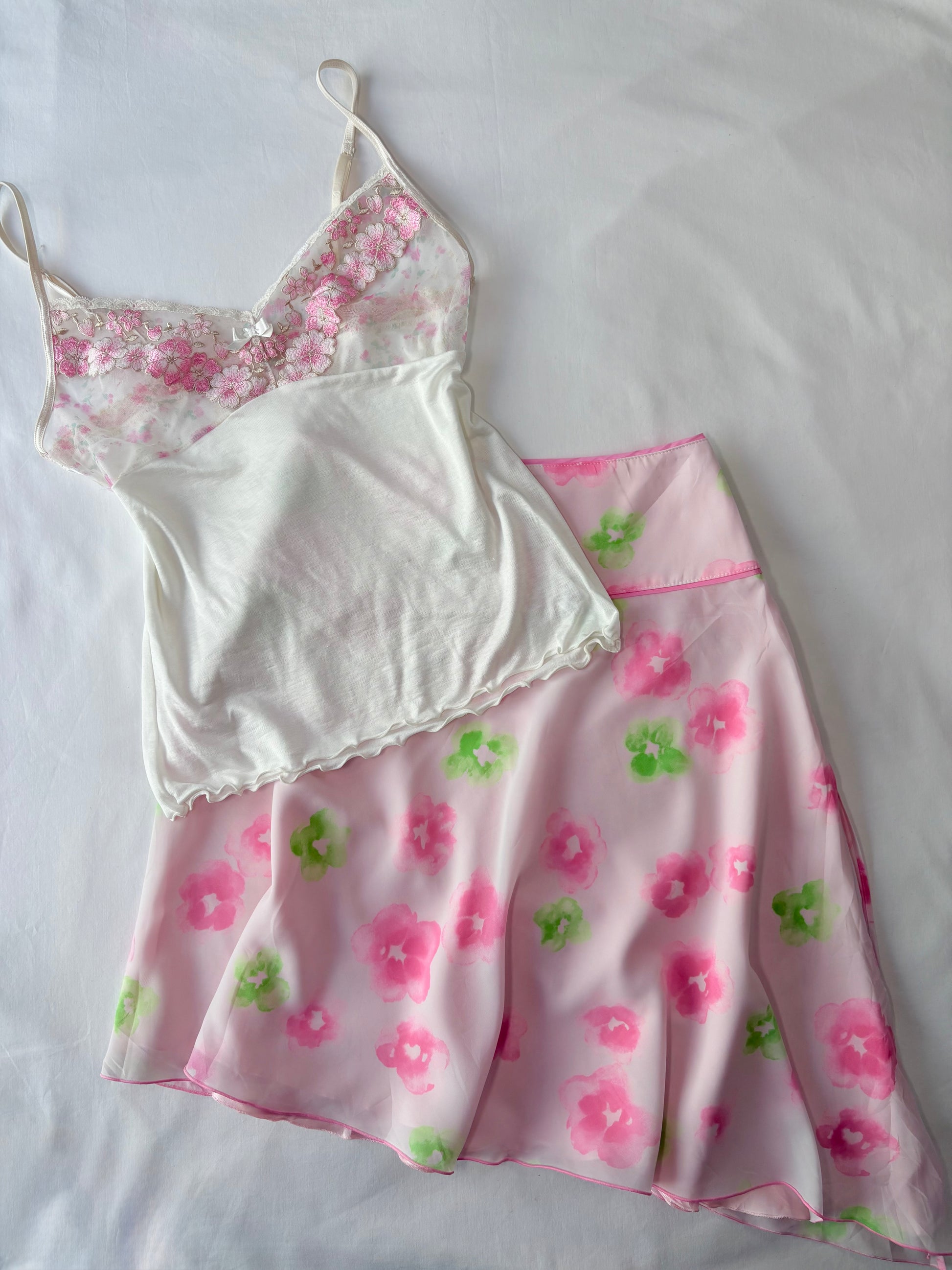 00’s Pink and green floral midi skirt