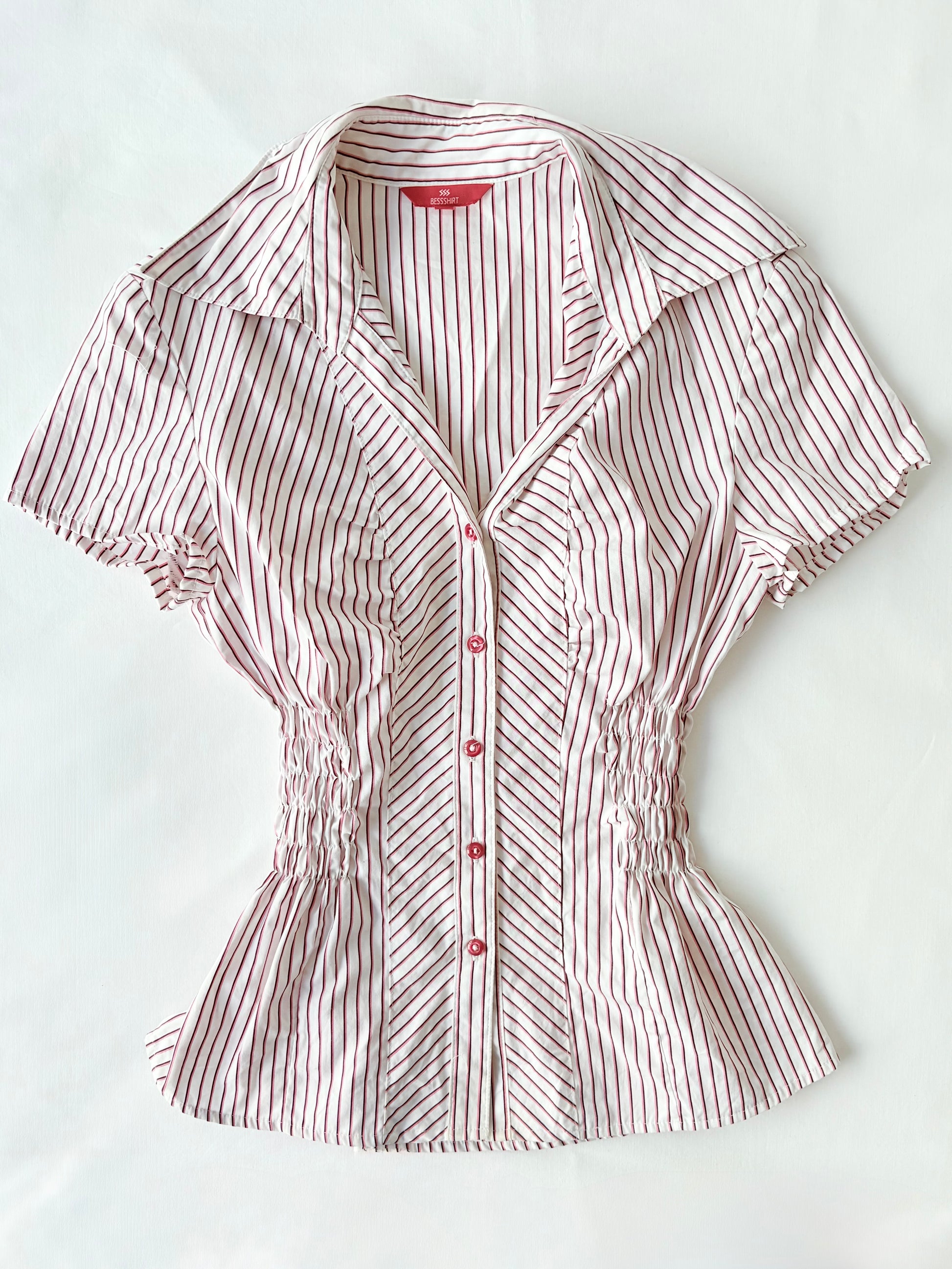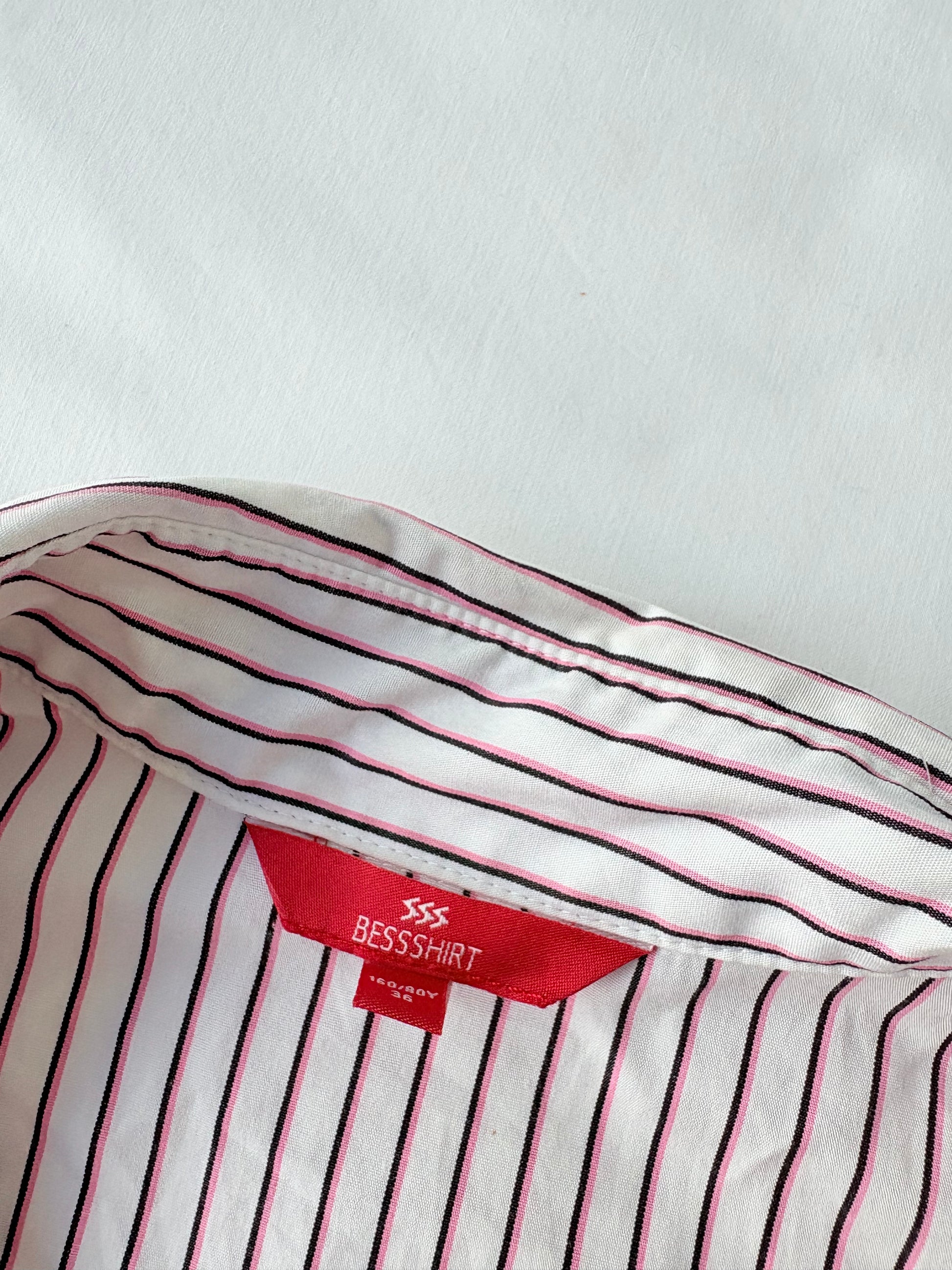 00’s Pink cinched striped shirt