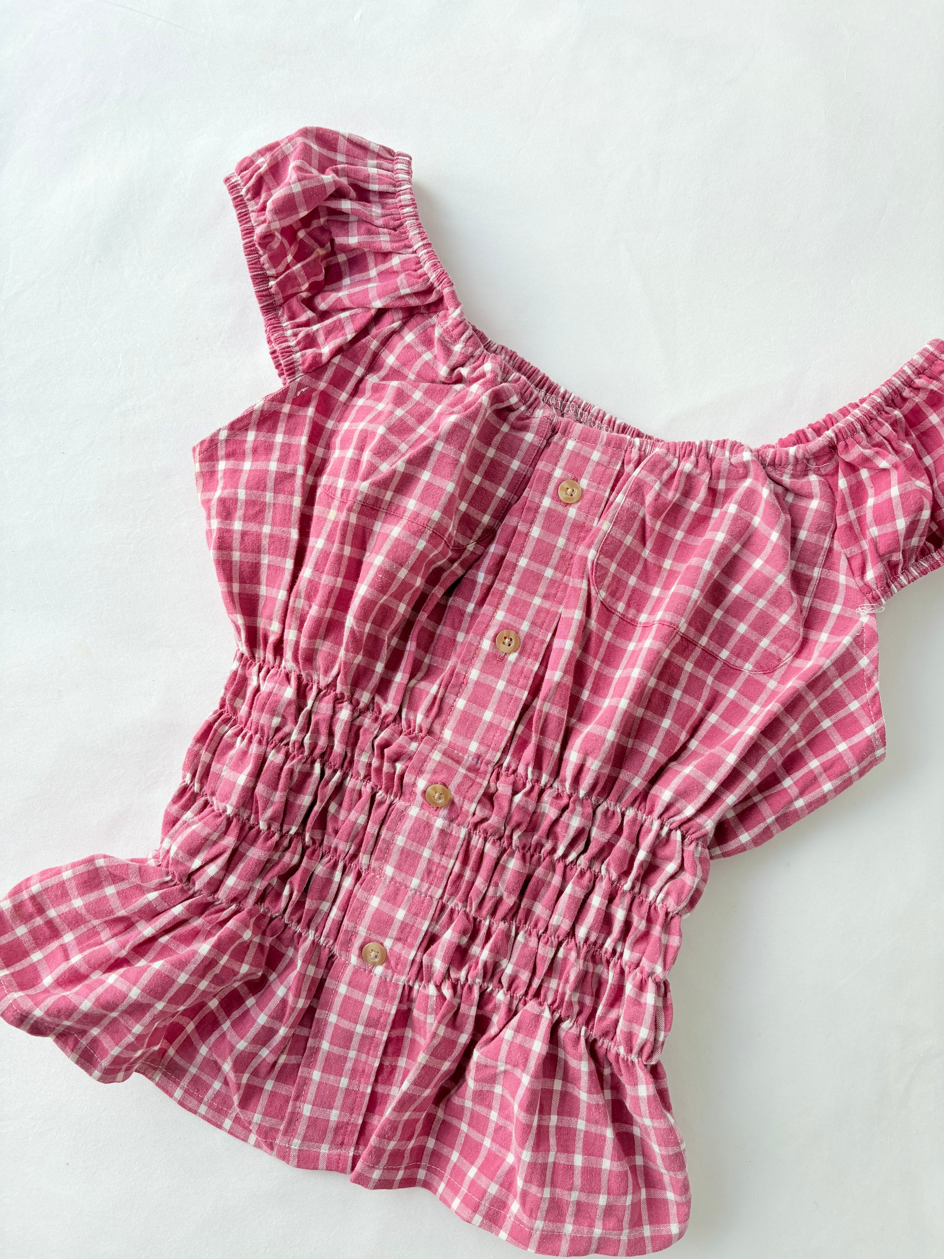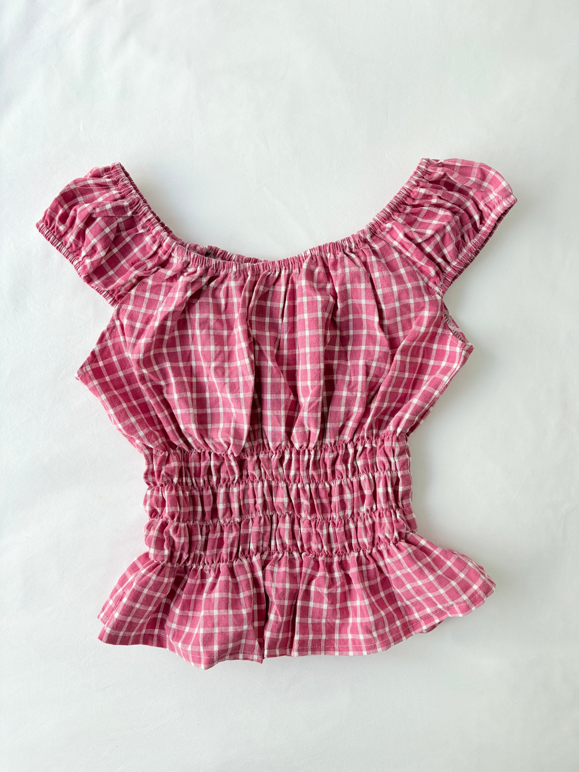 00’s Pink plaid milkmaid top | Size 12-14