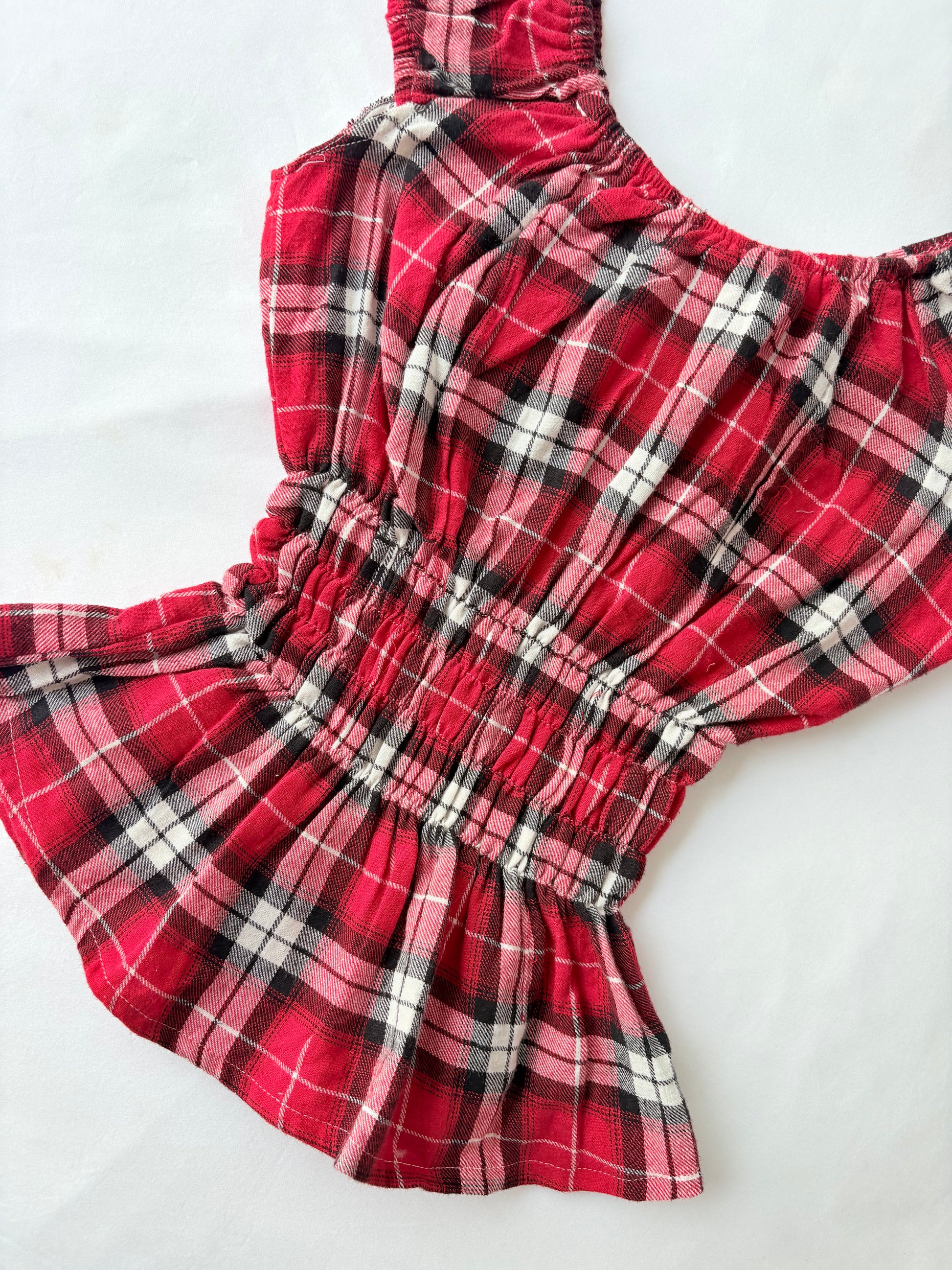 00’s Red plaid milkmaid top | Size 10-12