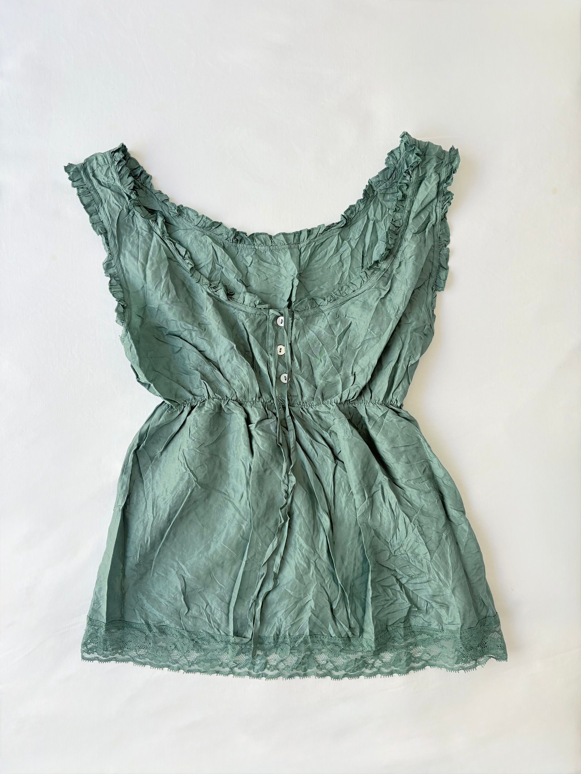 00’s Sage crinkle tie top