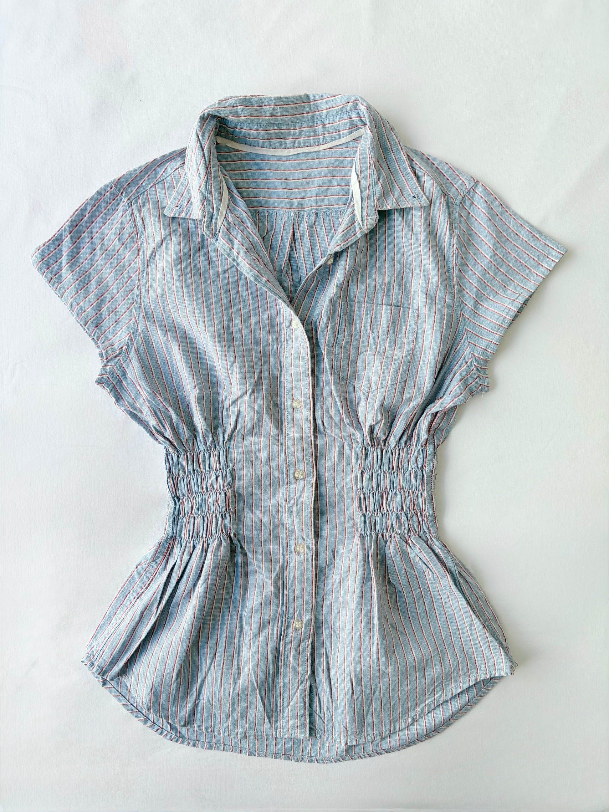 00’s Striped blue cinched shirt