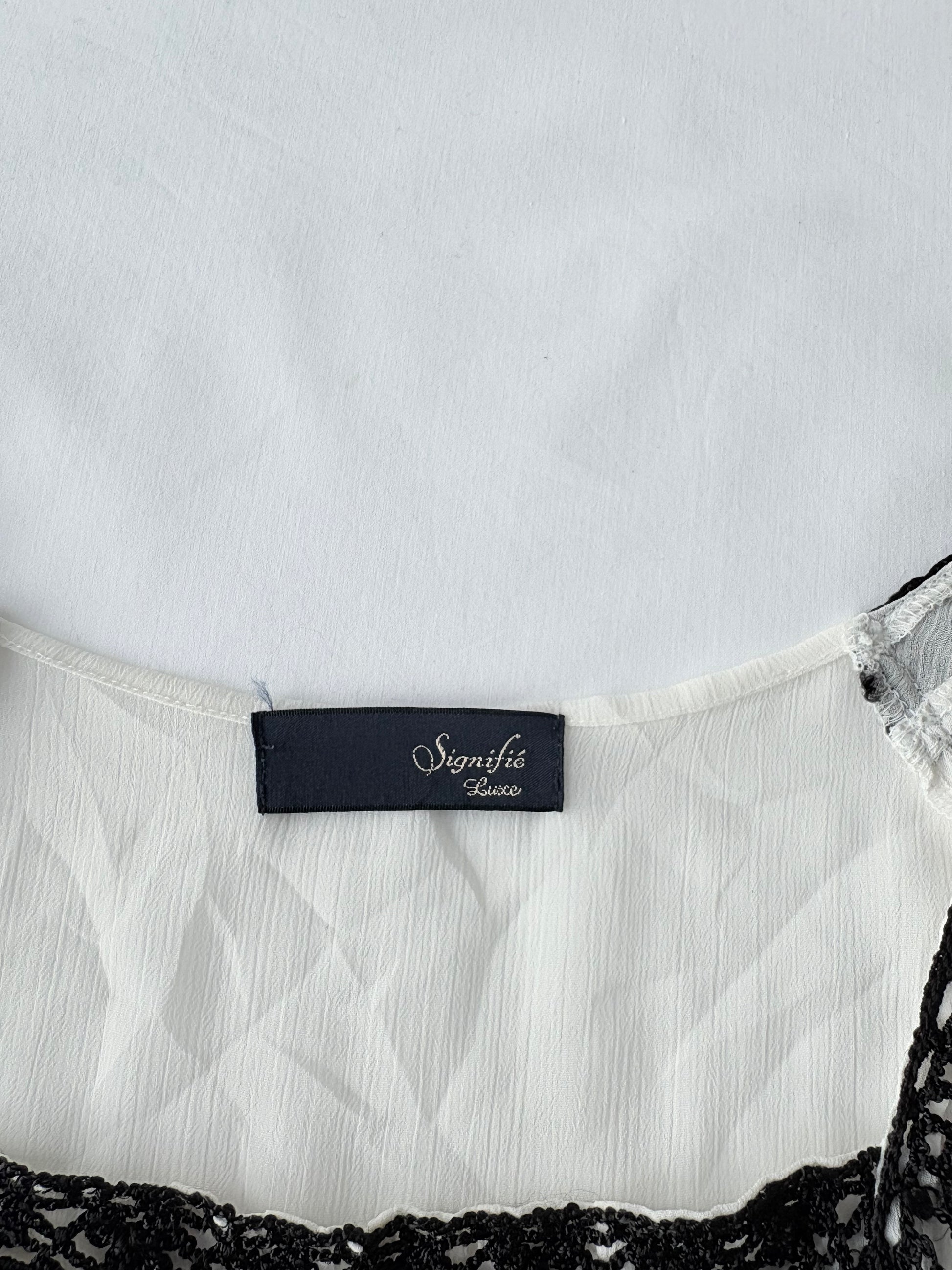 00’s White ribbon Japanese top | Size medium