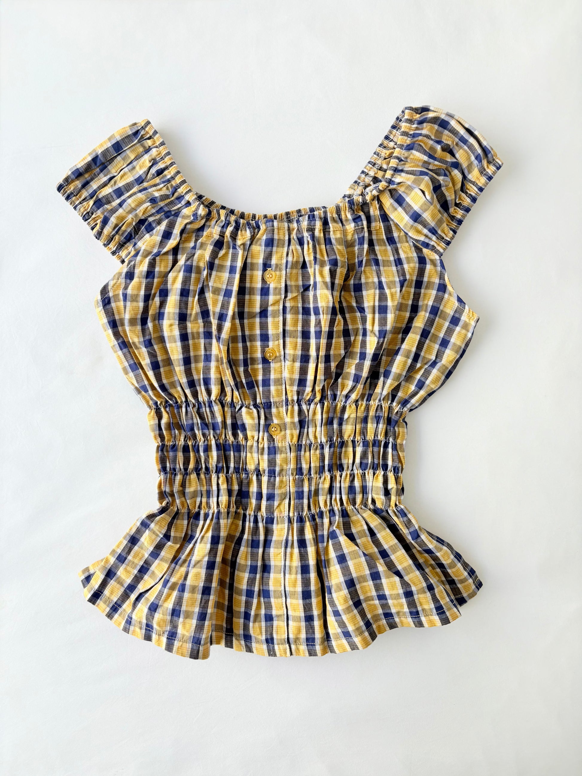00’s Yellow plaid milkmaid top