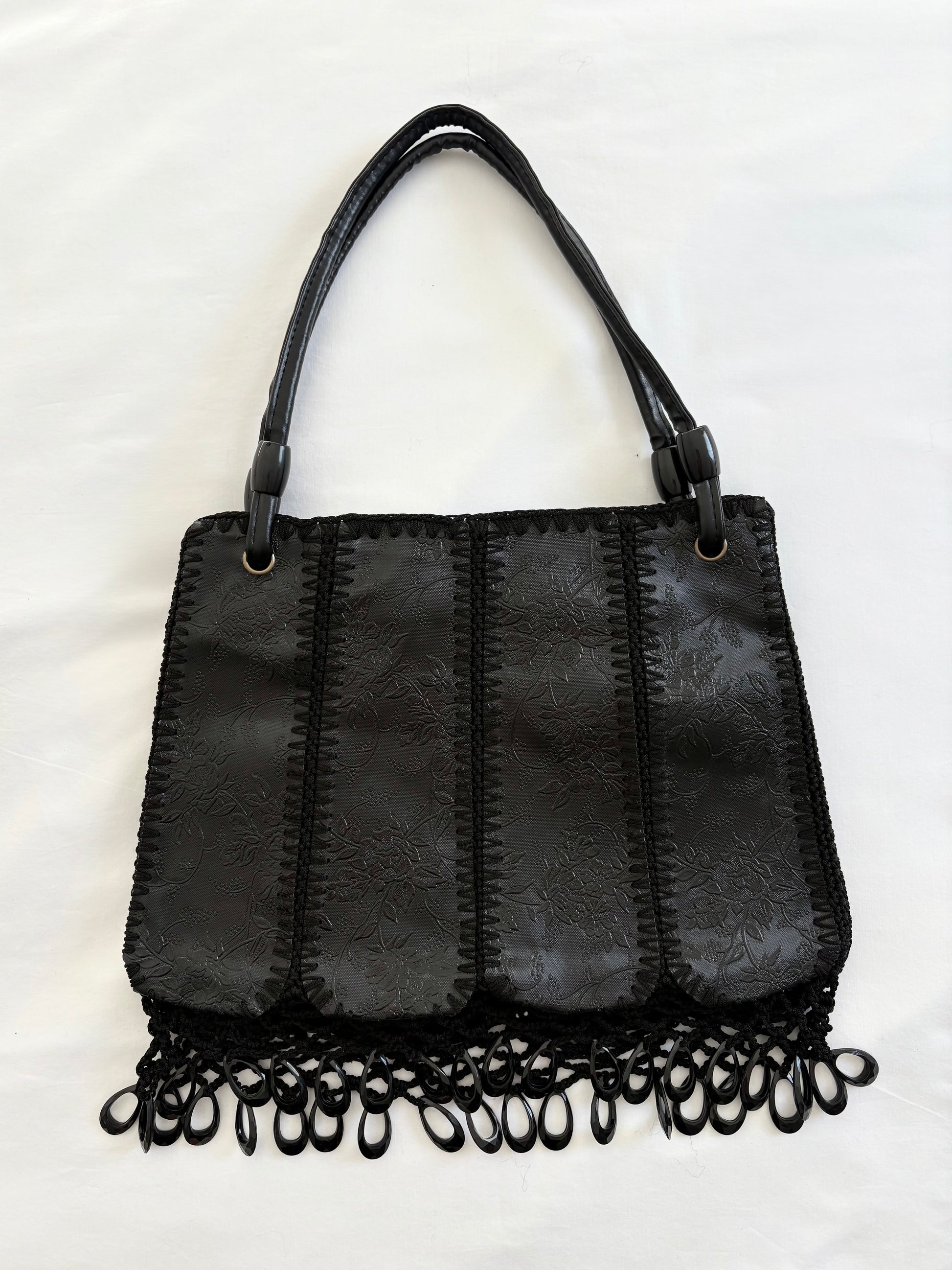 Black crochet floral bag